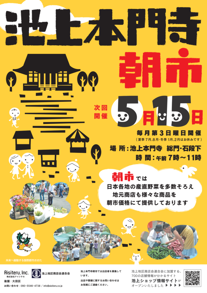 5.15日(日)池上本門寺朝市出店いたしました。