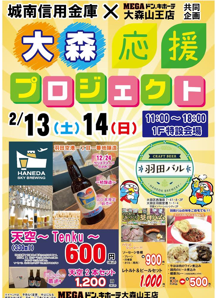 バレンタイン企画としてハートマークの地ビール「天空」(羽田空港1丁目1番地で醸造)の販売を行い、